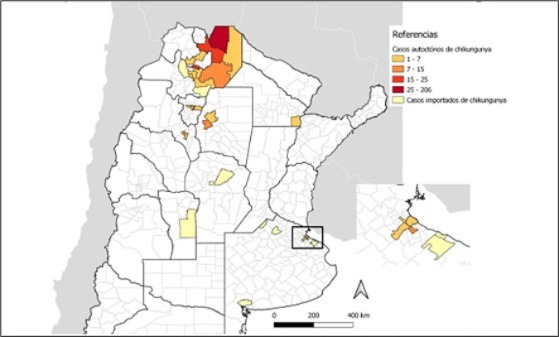 Durante la temporada en curso se notificaron 4425 casos sospechosos de Fiebre Chikungunya, de los cuales 433 corresponden a casos confirmados y probables. Los casos notificados con antecedente de viaje son importados de Bolivia, Brasil, Paraguay y Cuba.